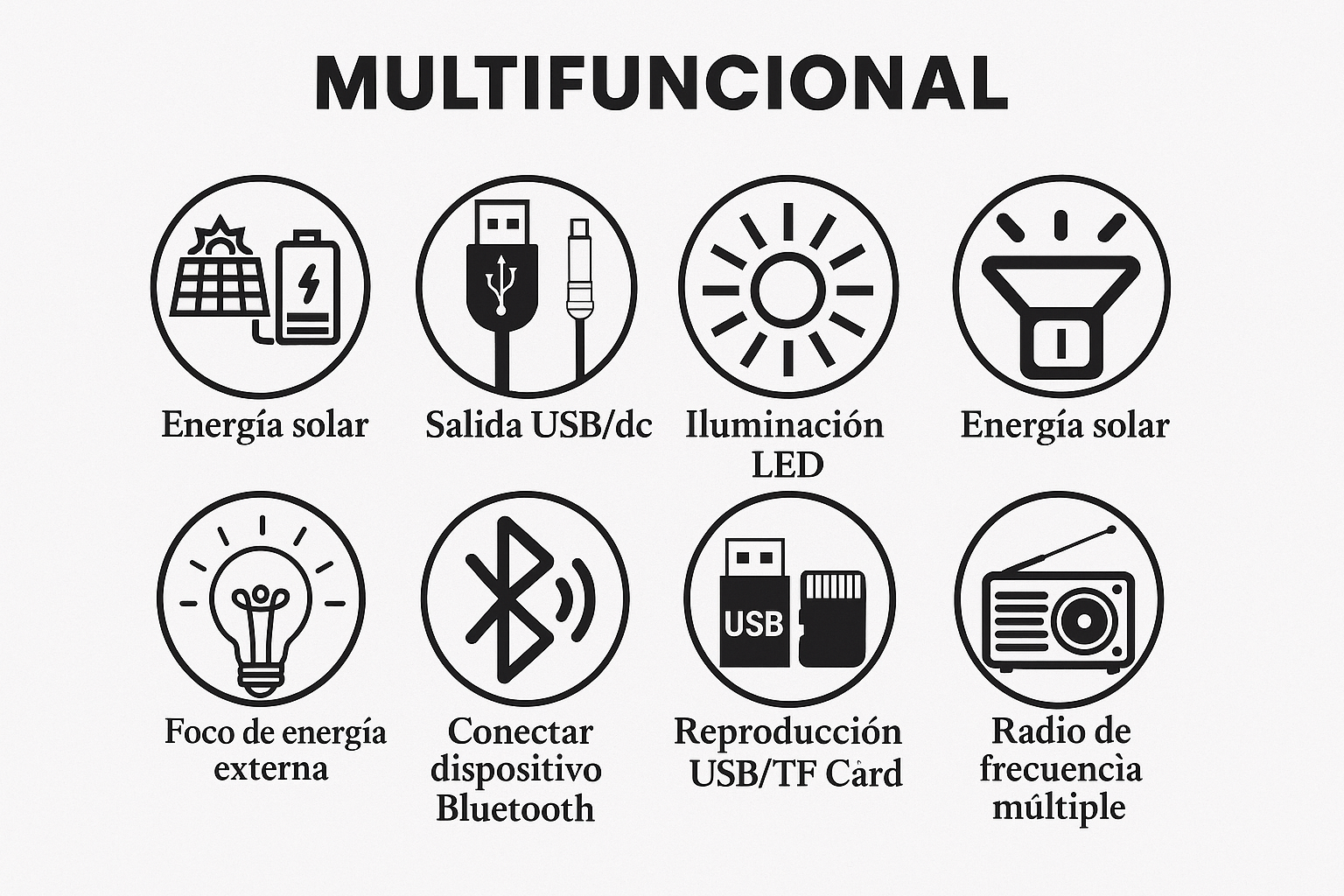 Posee un inversor para 220V con capacidad máxima de 100W (de bajo consumo hasta 100W) para conectar equipos tales como: ventiladores, parlantes, humidificadores,