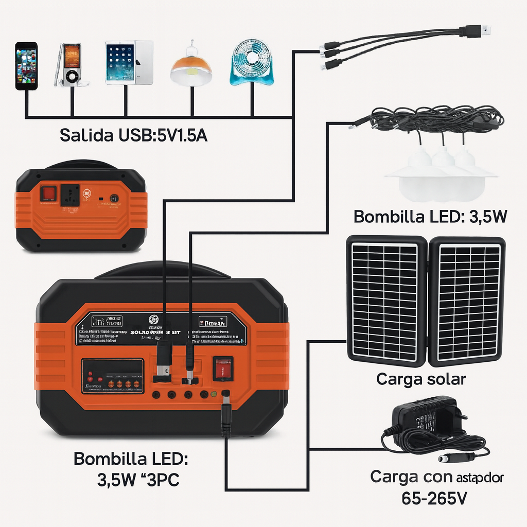 ESTACION SOLAR GENERADOR 100 W!! KIT COMPLETO DE EMERGENCIAS - CAMPING