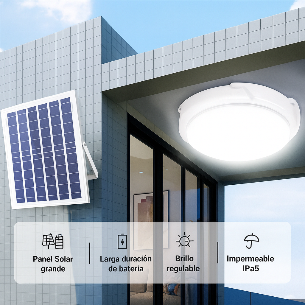 Ideal para patios, terrazas, parcelas, entradas de vehículos, galpones o zonas rurales sin acceso a red eléctrica.