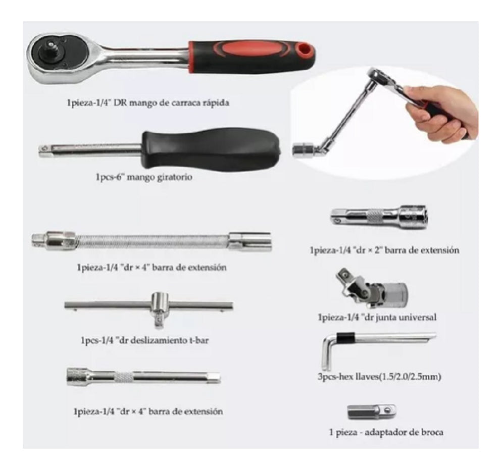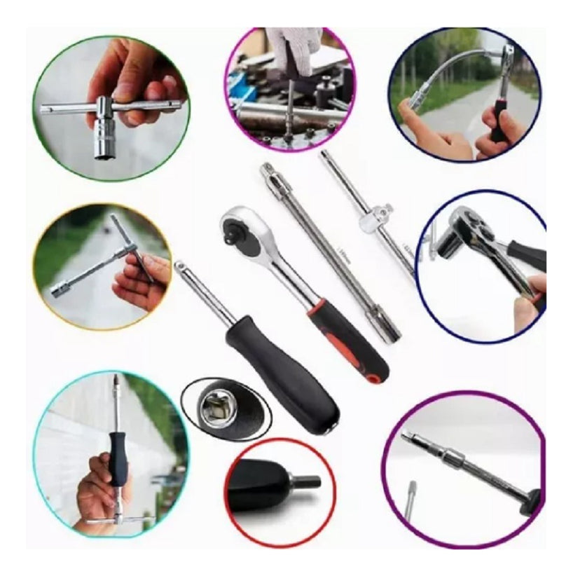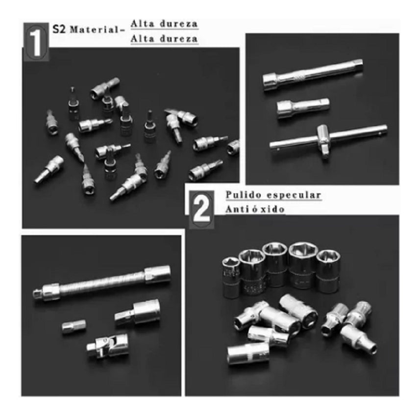 Juego De Herramientas Mecánicas Dados Llaves Acero 46 Pcs